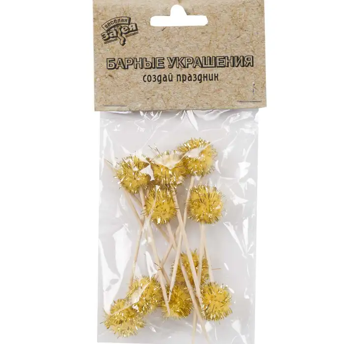 Пика д/канапе Помпон золотой 8см 10шт/G