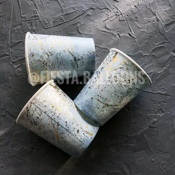 Стаканчики голубые "Золотые брызги" 200мл 10шт