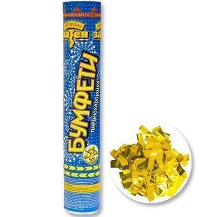 Пневмохлопушка бумфети 30см конфетти фольга золото