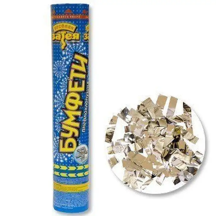 Пневмохлопушка бумфети 30см конфетти фольга серебро