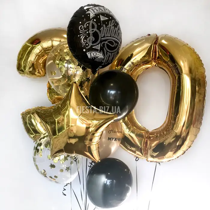 Набор "Золото х Чёрный с цифрами" 9 шаров
