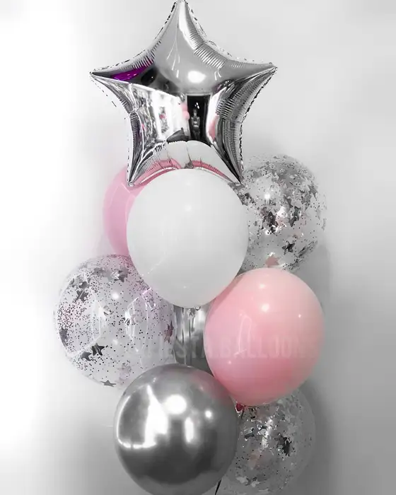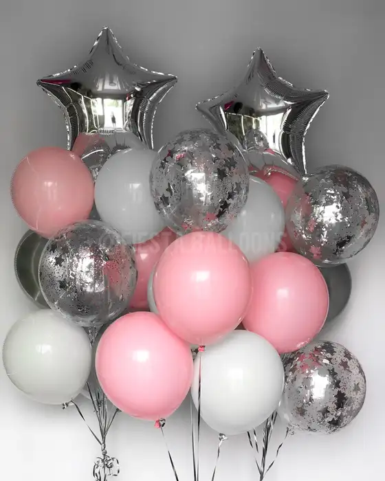 Набор "Розовый х Серебро х Агаты" 14 шаров