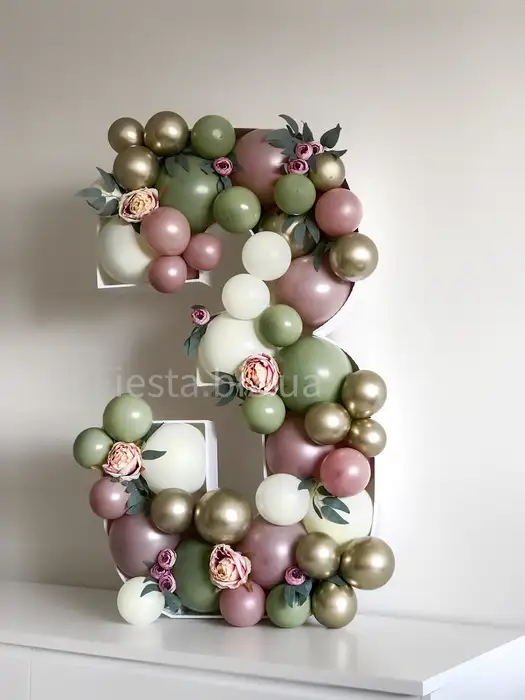 Цифра 3 аэромозаика с декором