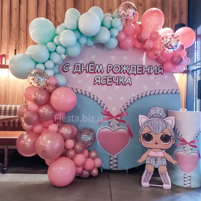 Фотозона круглая "Кукла Лол" Аквамарин с розовым