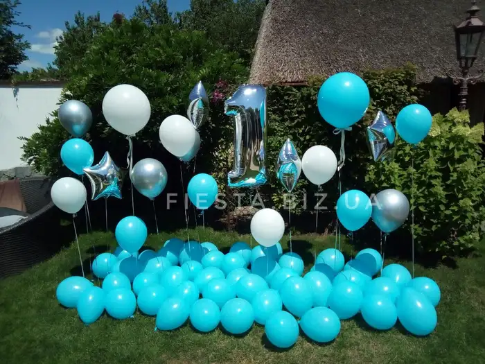Набор "Голубой перламутр с цифрой" 19 шаров