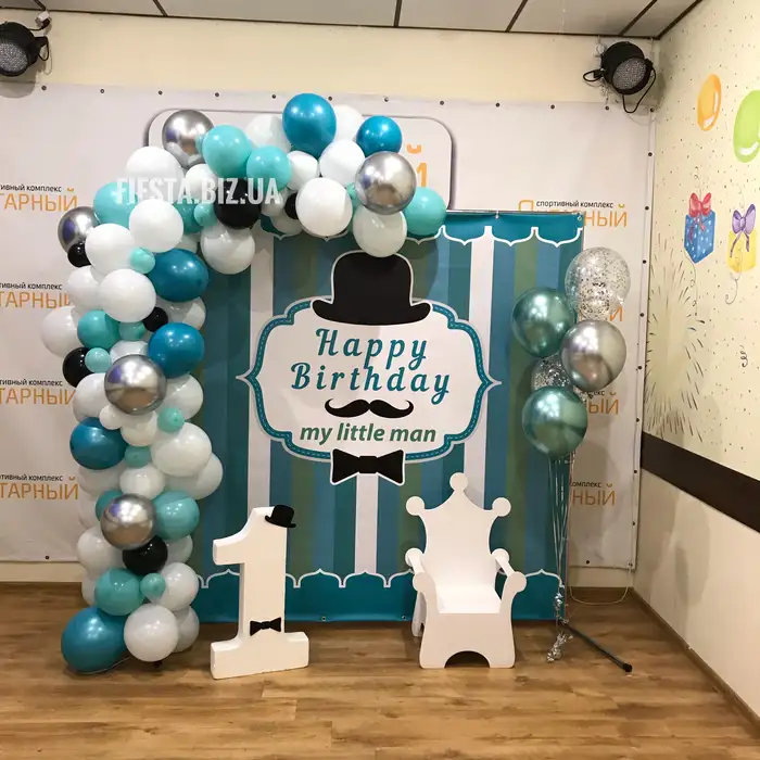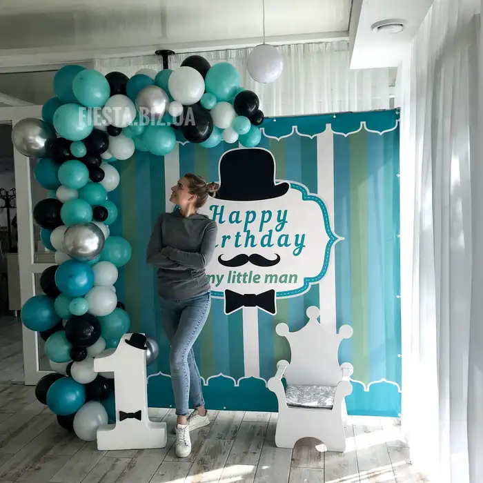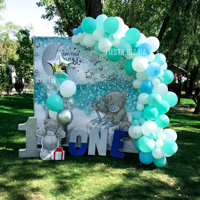 Фотозона квадратная "Мишка Тедди" аквамарин с декором