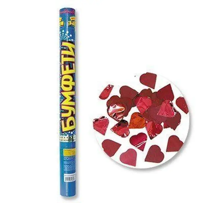 Пневмохлопушка 60см конфетти сердца бумажные и фольгированные