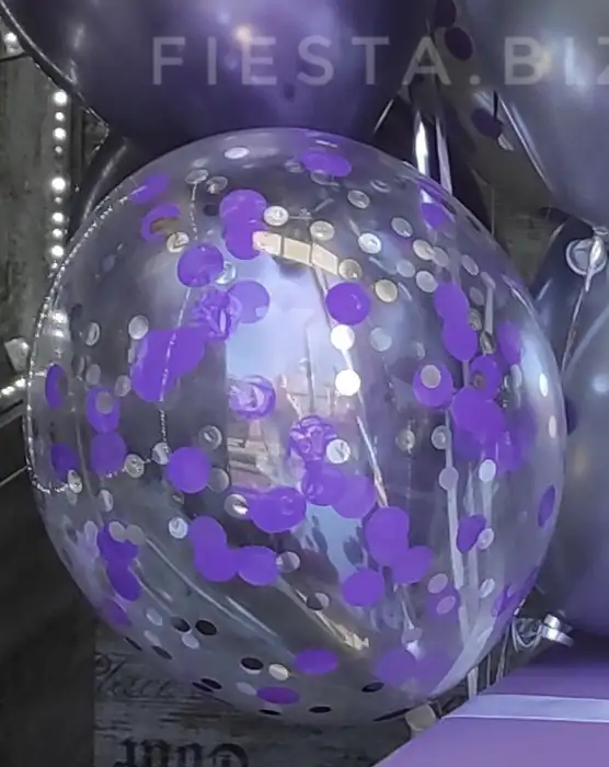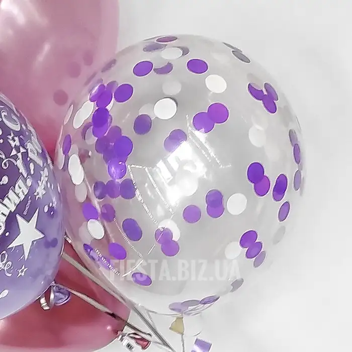 12" Прозрачный с конфетти "Круги фиолетовые и мини круги серебро"