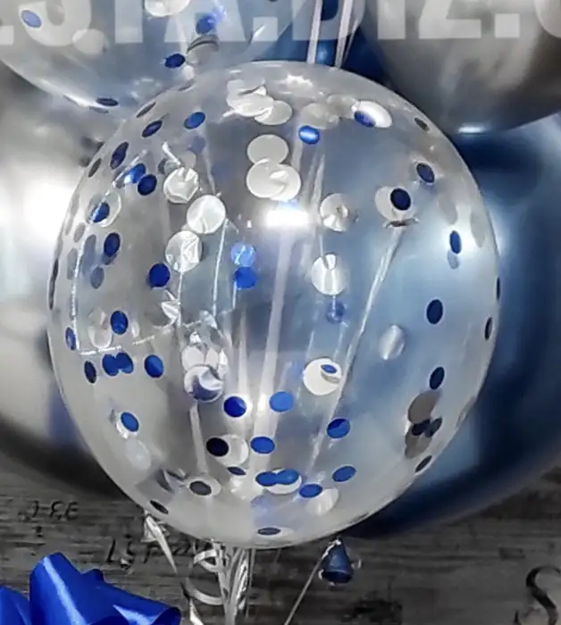 12" Прозрачный с конфетти "Круги синие и серебро"
