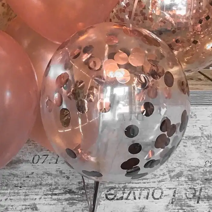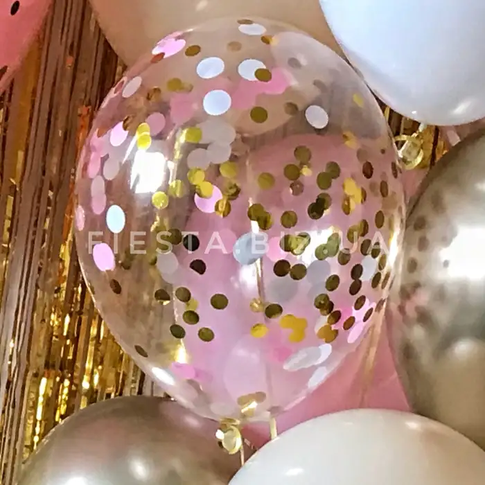 12" Прозрачный с конфетти "Круги белые, розовые и золото"