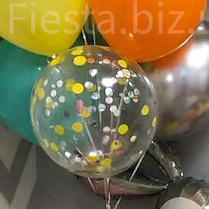 12" Прозрачный с конфетти "Круги жёлтые, круги серебро"