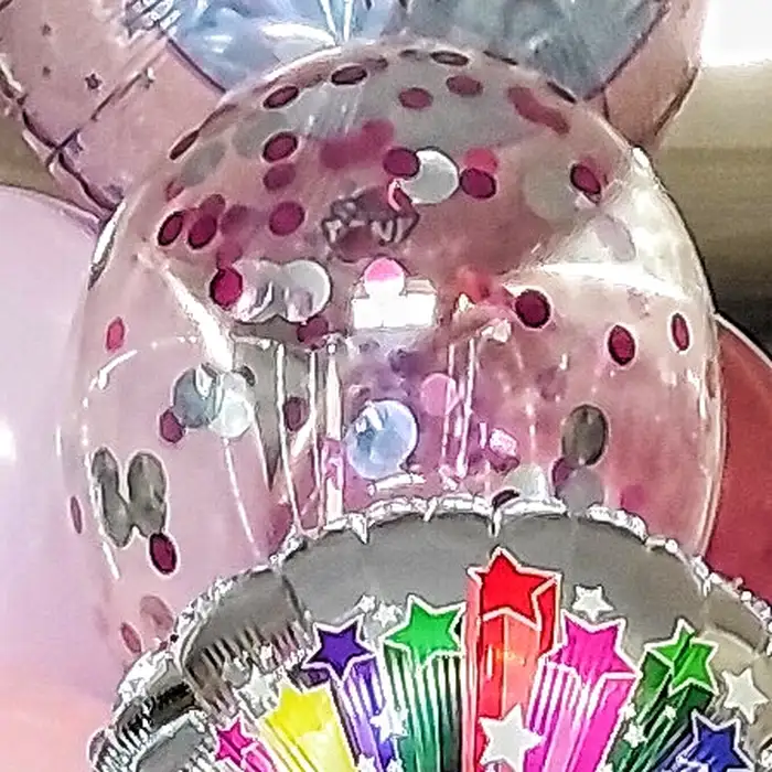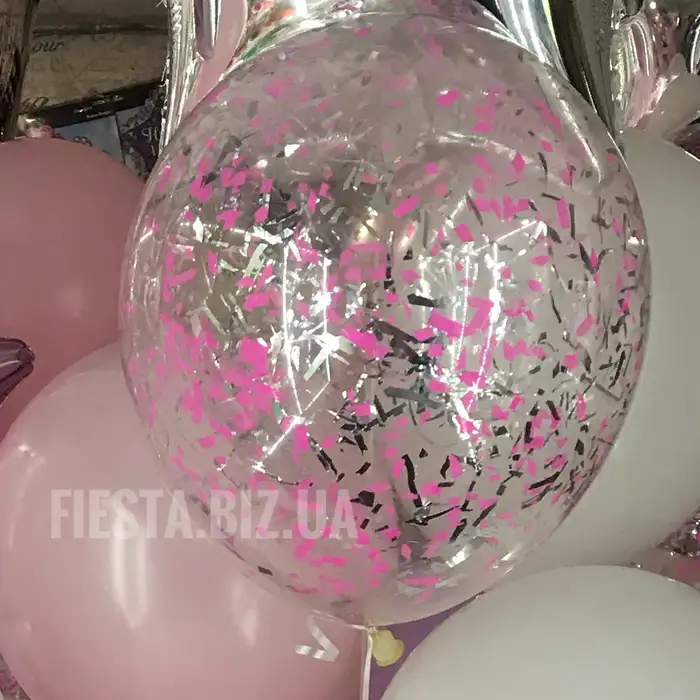 12" Прозрачный с конфетти "Мишура серебро и мишура розовая"