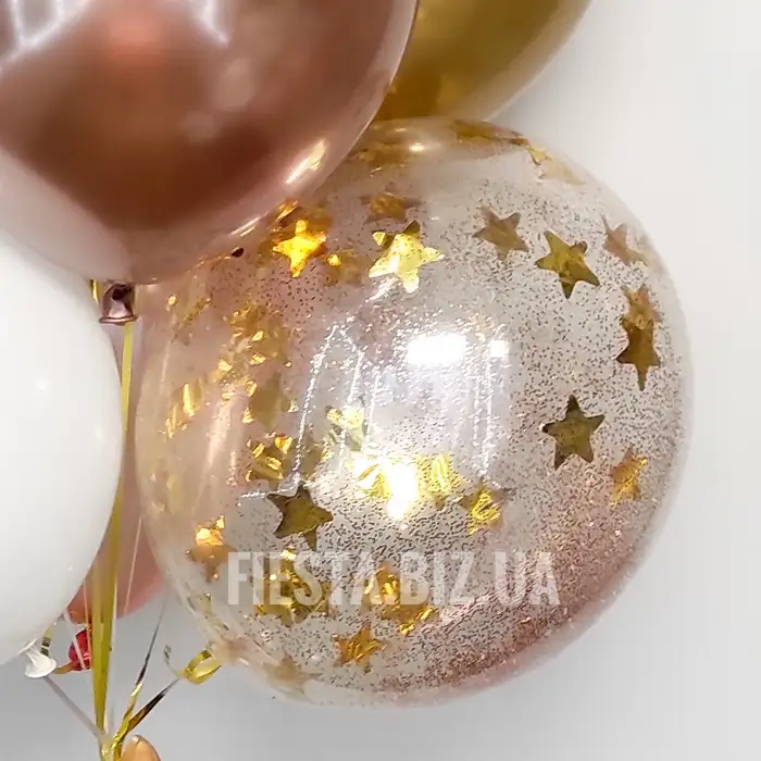 12" Прозрачный с конфетти "Звёзды золото и розовая крошка"