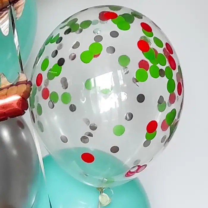 12" Прозрачный с конфетти "Круги красные, зелёные и серебристые"