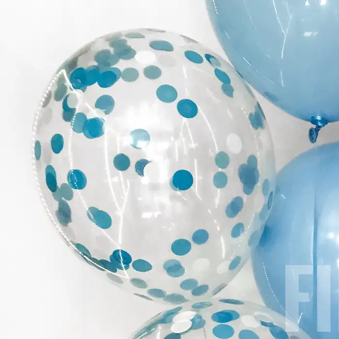 12" Прозрачный с конфетти "Круги белые и голубые"