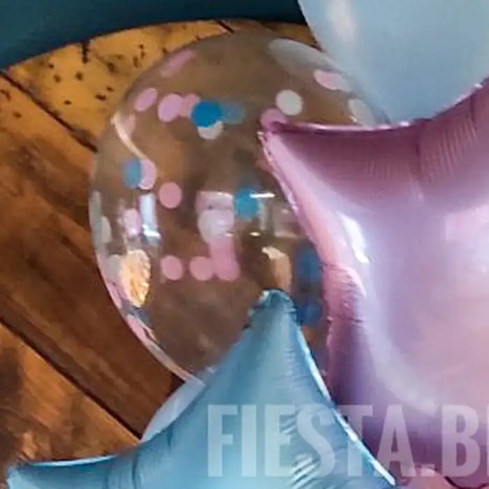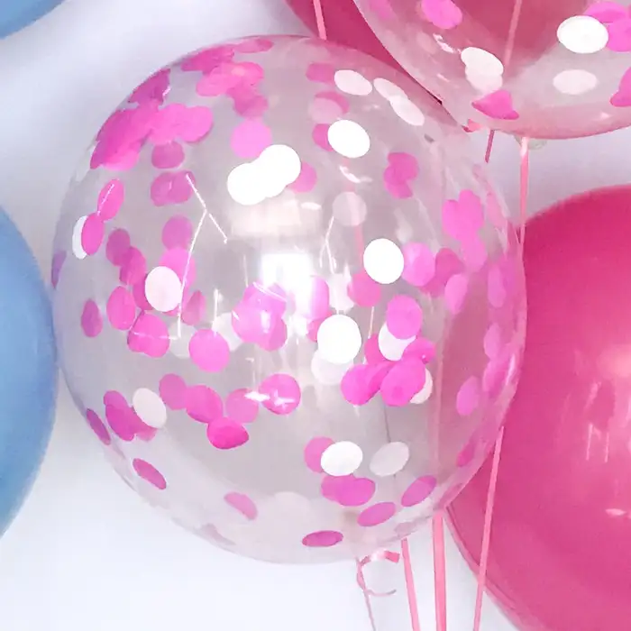 12" Прозрачный с конфетти "Круги белые, розовые и голубые"