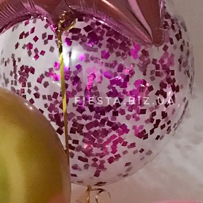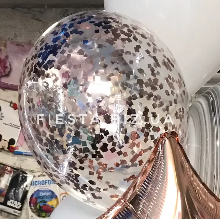 12" Прозрачный с конфетти "Квадратики розовое золото"