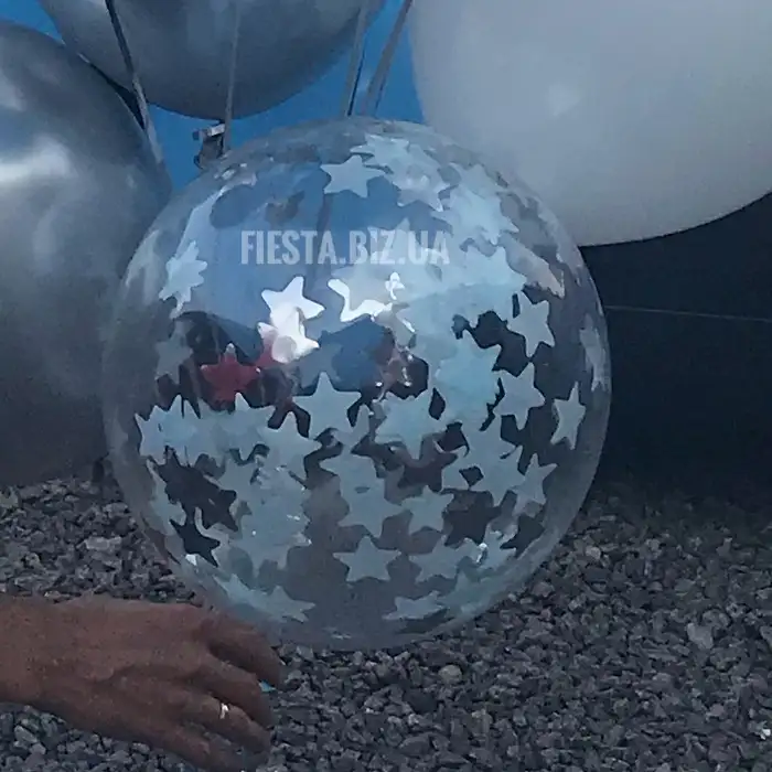 12" Прозрачный с конфетти "Звёзды голубые, звезды серебро"