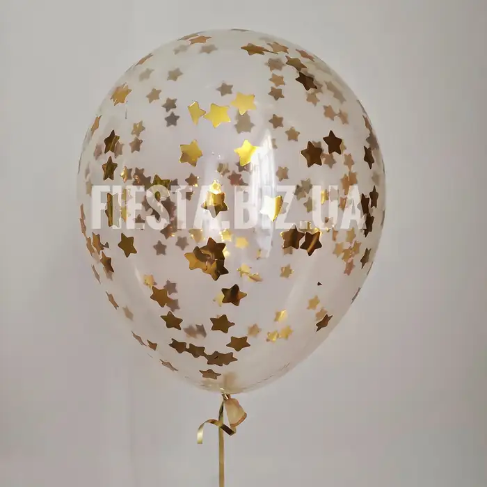 12" Прозрачный с конфетти "Звездочки мини золото"