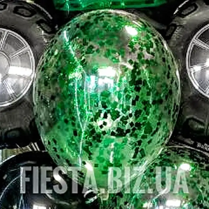 12" Прозрачный с конфетти "Квадратики зелёные"
