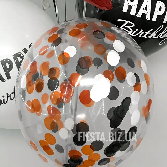 12" Прозрачный с конфетти "Круги белые, красные и чёрные"