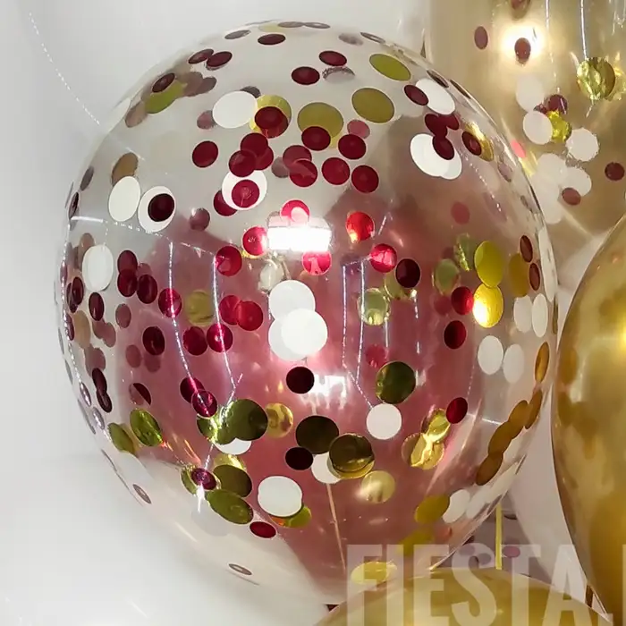 12" Прозрачный с конфетти "Круги золото, круги белые, мини круги красные "