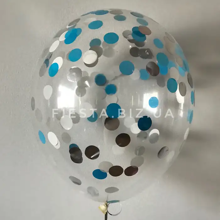 12" Прозрачный с конфетти "Круги голубой, белый, серебро"