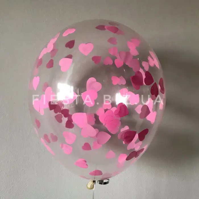 12" Прозрачный с конфетти "Сердечки нежно-розовые"