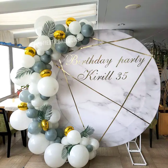Фотозона круглая белая "Голубой, аквамарин, хром" 2
