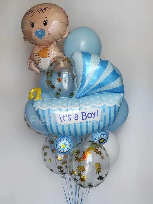 Наша команда всегда рекомендует отталкиваться от того, что любит мама новорожденного. Например если есть любимый цвет, то не обязательно выбирать шарики на рождение мальчика голубого цвета.