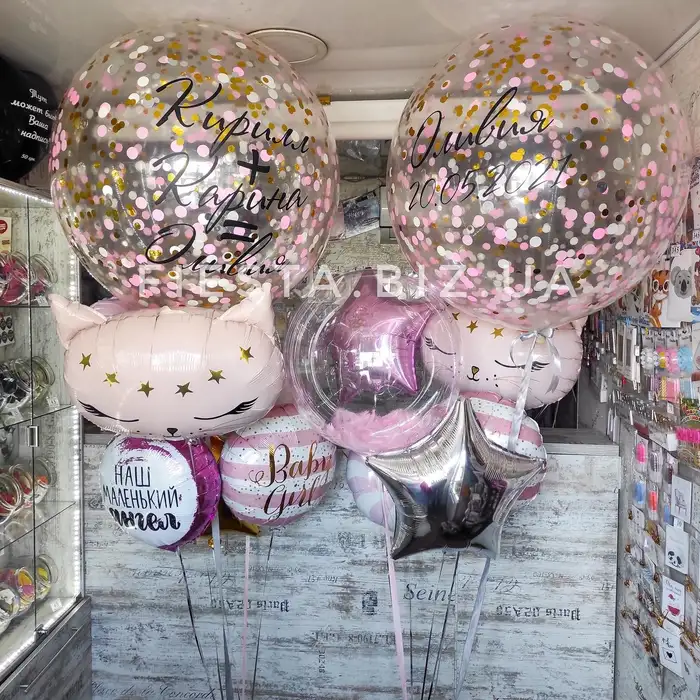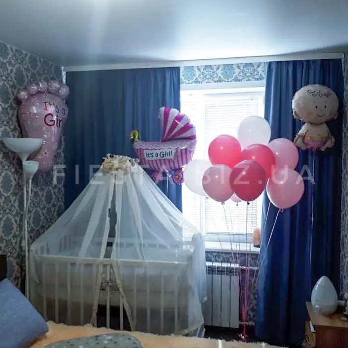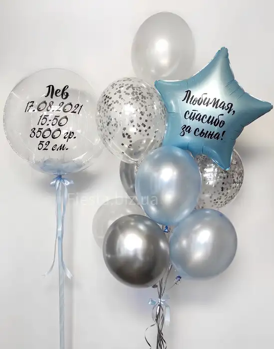 В наличии на сайте есть большие фольгированные фигуры в виде малышей, бутылочек, сосок, милых облаков. Также есть большой выбор латексных и фольгированных шаров с тематическими надписями. Всегда можно быстро выбрать готовый набор шаров на выписку или собрать композицию из шаров поштучно. Если обсудить заказ заранее, то мы можем изготовить индивидуальную наклейку на шар с любым текстом. Например сейчас очень популярны метрики новорожденного на большом шаре. Это добавит индивидуальности набору из шаров.