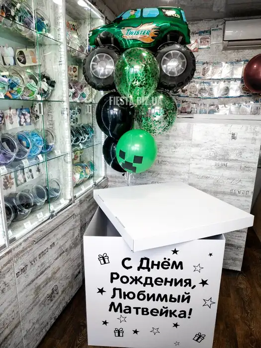 Набор "Зелёный внедорожник" с коробкой сюрприз 7 шаров