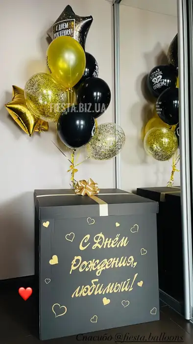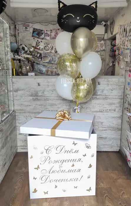 Набор "Кошка спящая чёрная" с коробкой сюрприз 10 шаров