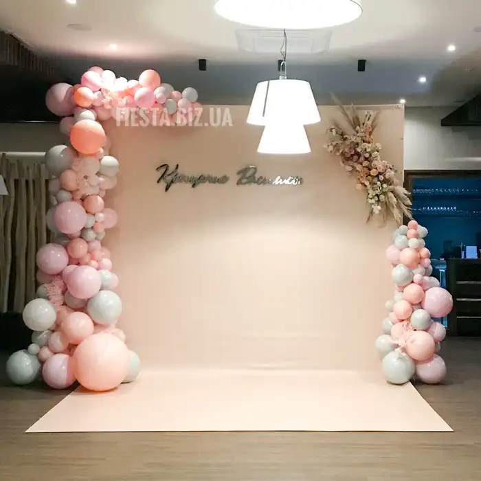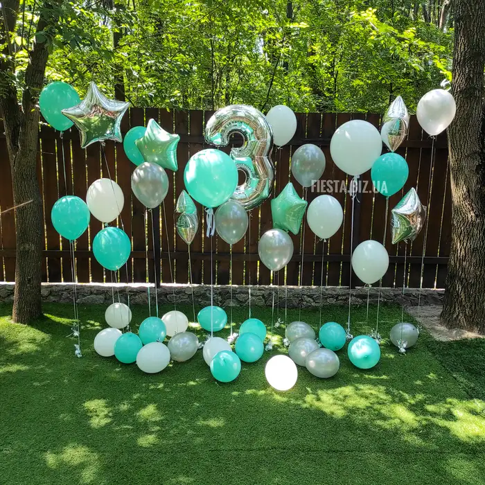 Стена из шаров "Аквамарин х Пудра" 26 шаров
