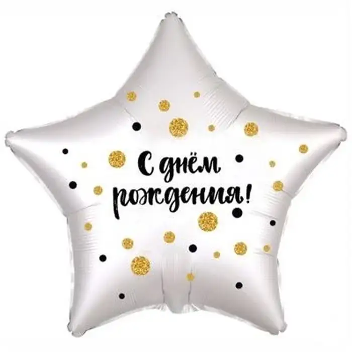 Звезда белый сатин с конфетти "С Днём Рождения"
