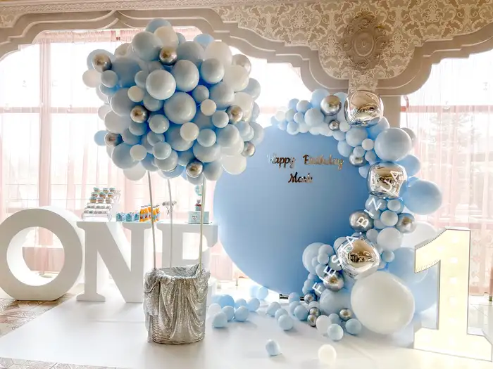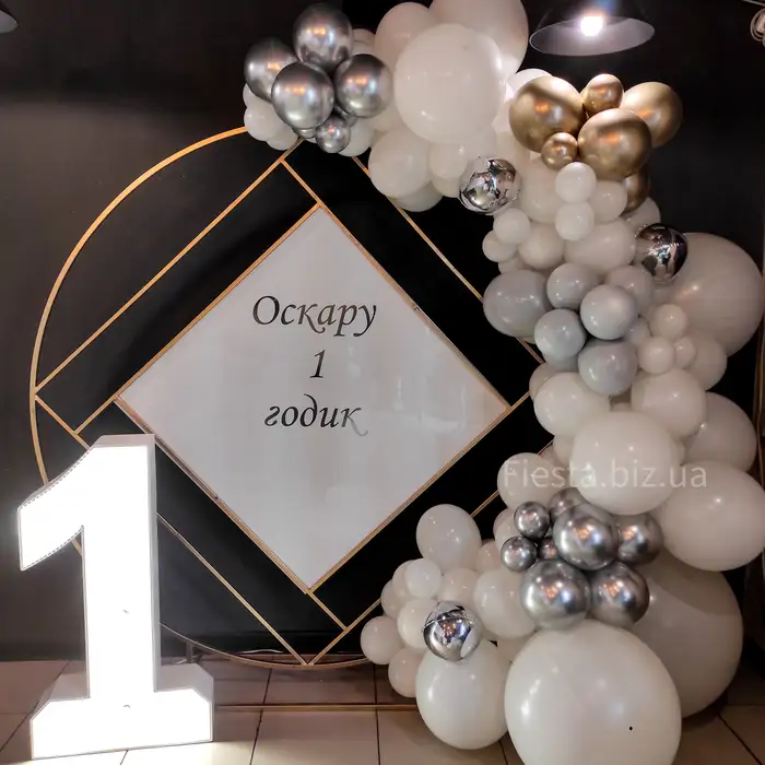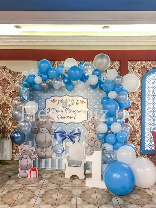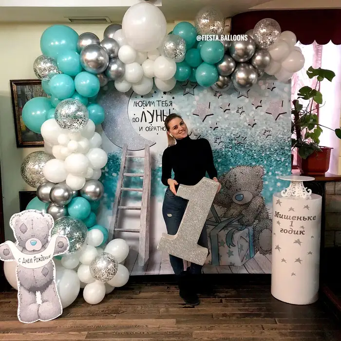 Мы обожаем создавать удивительные декорации из шаров! Наша фотозона на 1 годик украшена самыми яркими и красивыми шарами, которые подарят вам и вашим гостям радость и восторг.
