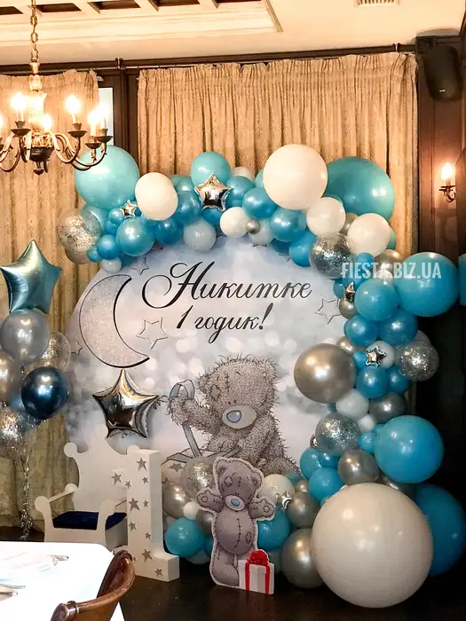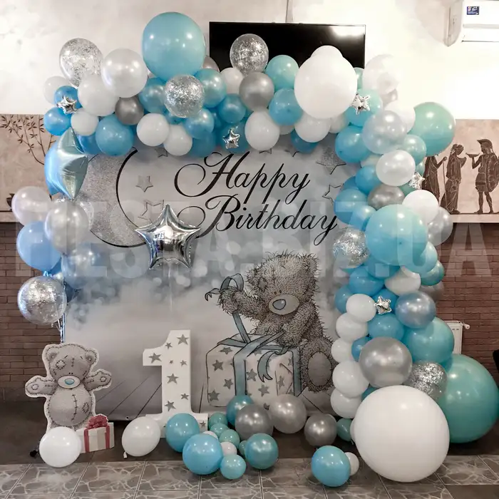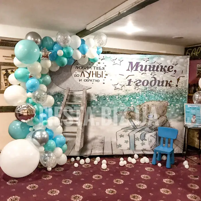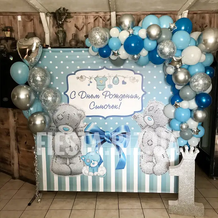 Фотозона квадратная "Мишка Тедди" аквамарин с декором