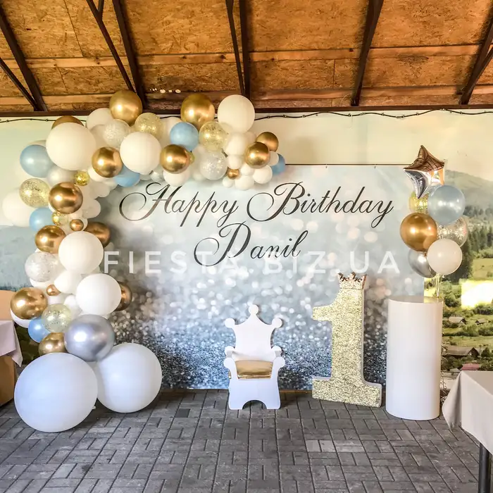 Фотозона 2м х 3м "Голубой глиттер + золото"