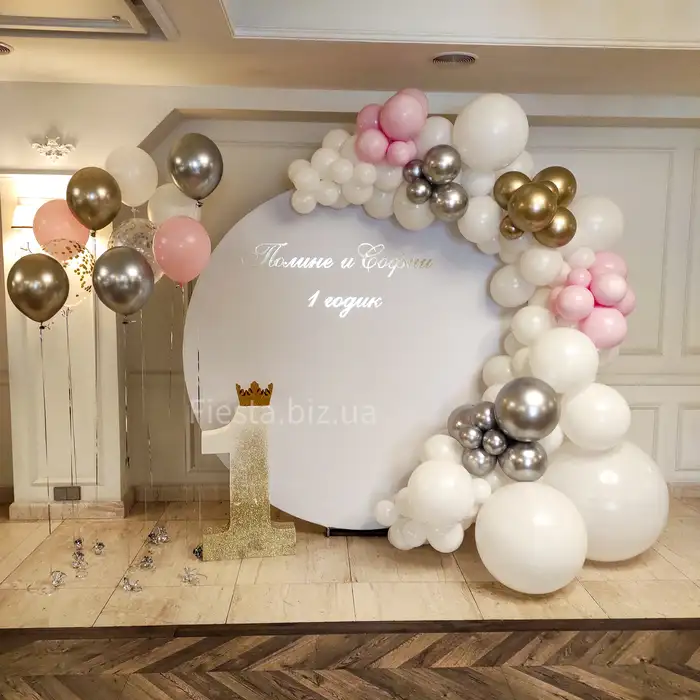 Наши профессиональные декораторы сделают гирлянду из шаров, которая станет великолепным украшением на день рождения вашей малышки. Нежные пастельные оттенки, блики и блеск шаров добавят волшебства и очарования.